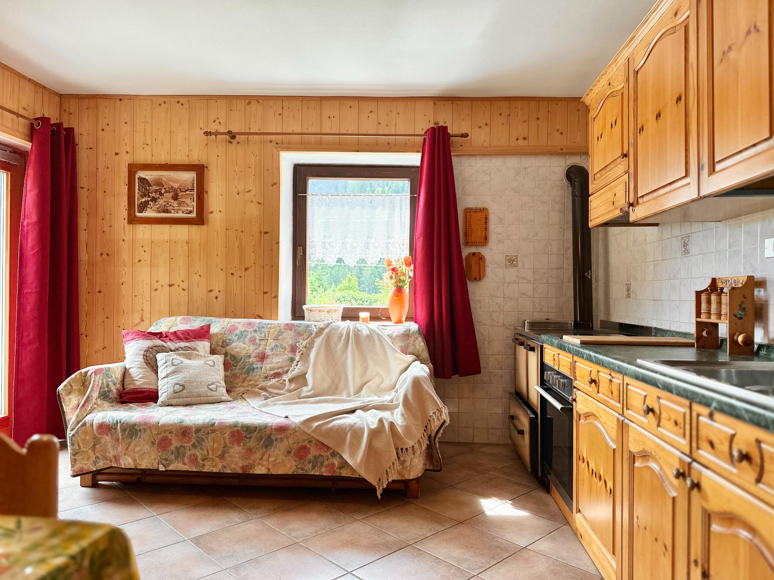 Divano letto matrimoniale, con angolo cottura e tavolo e balcone. Bagno condiviso con Camera 5.