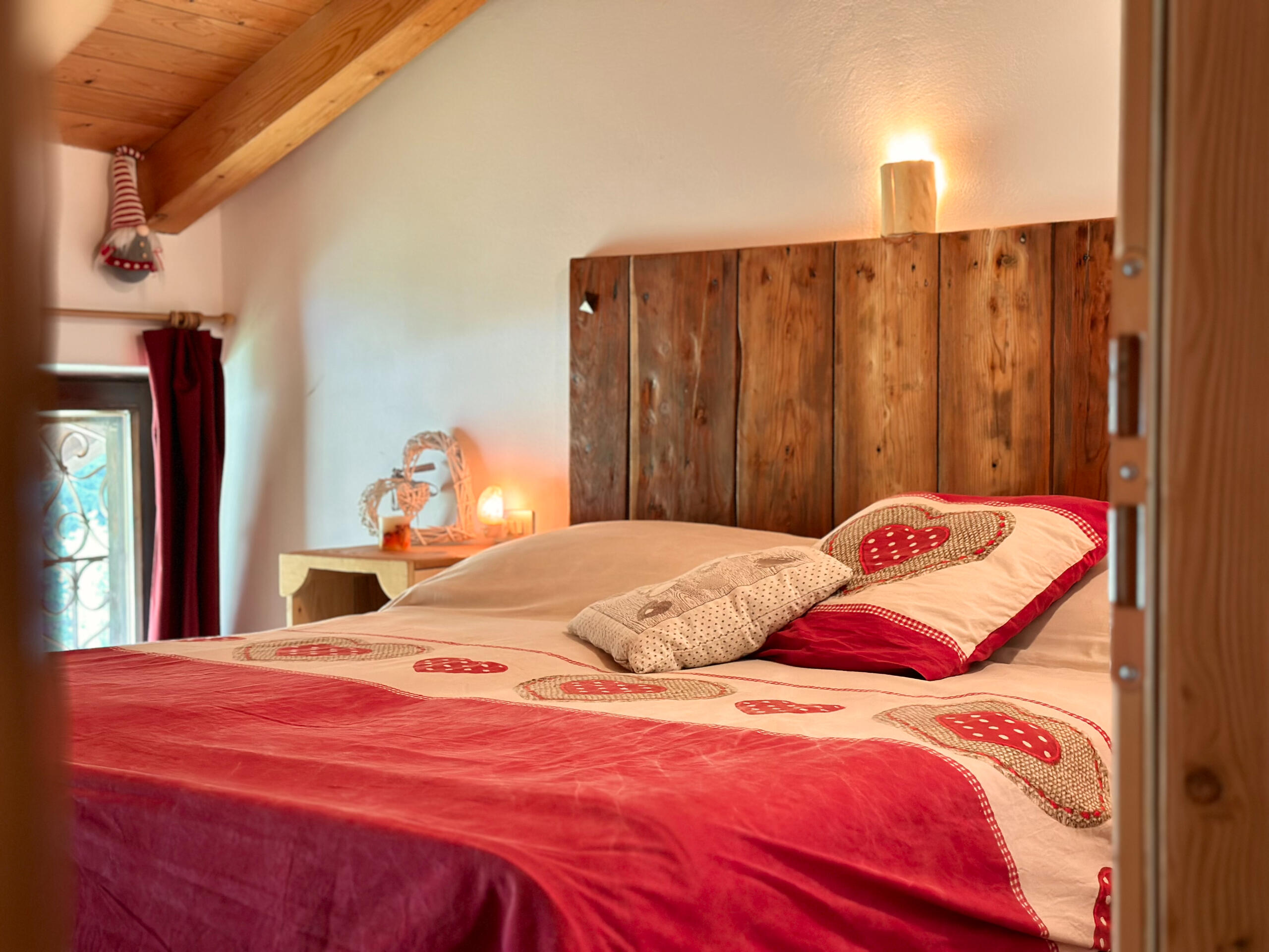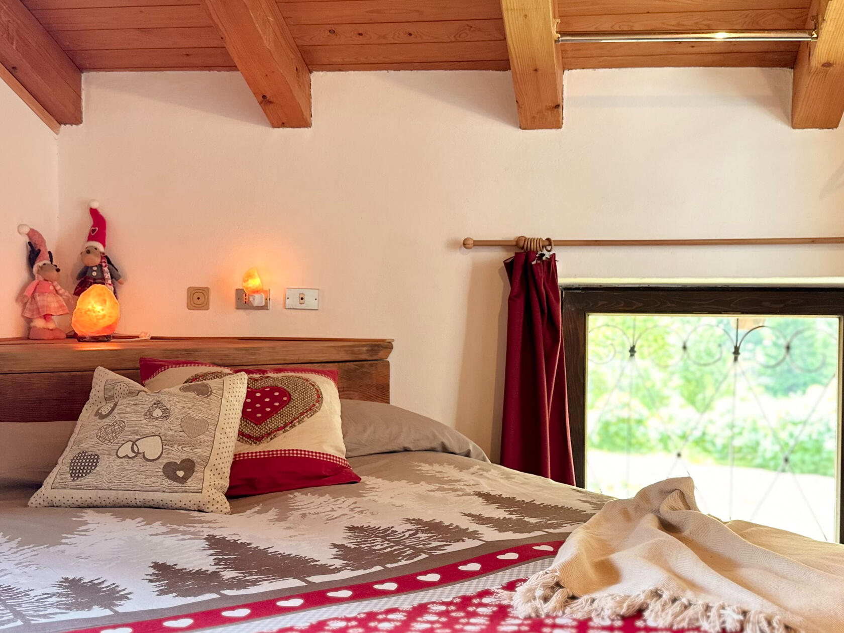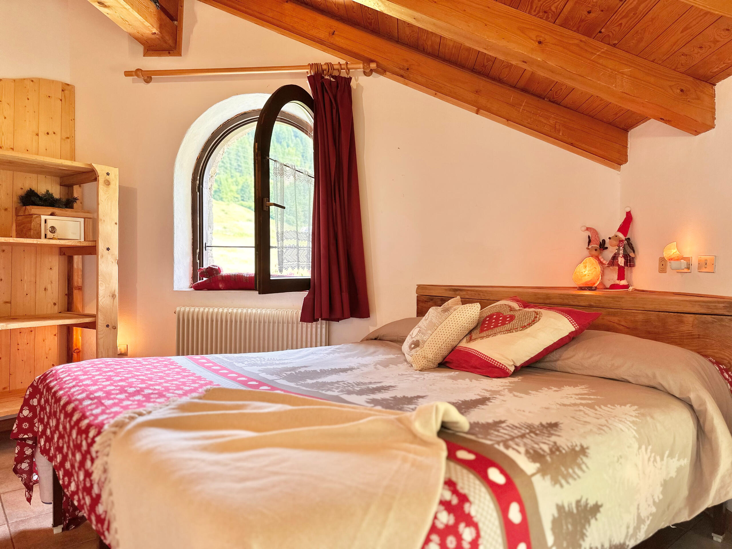 Ampia camera con letto matrimoniale + letto a castello, bagno con doccia. Mobili in legno rustico che scaldano l’ambiente.