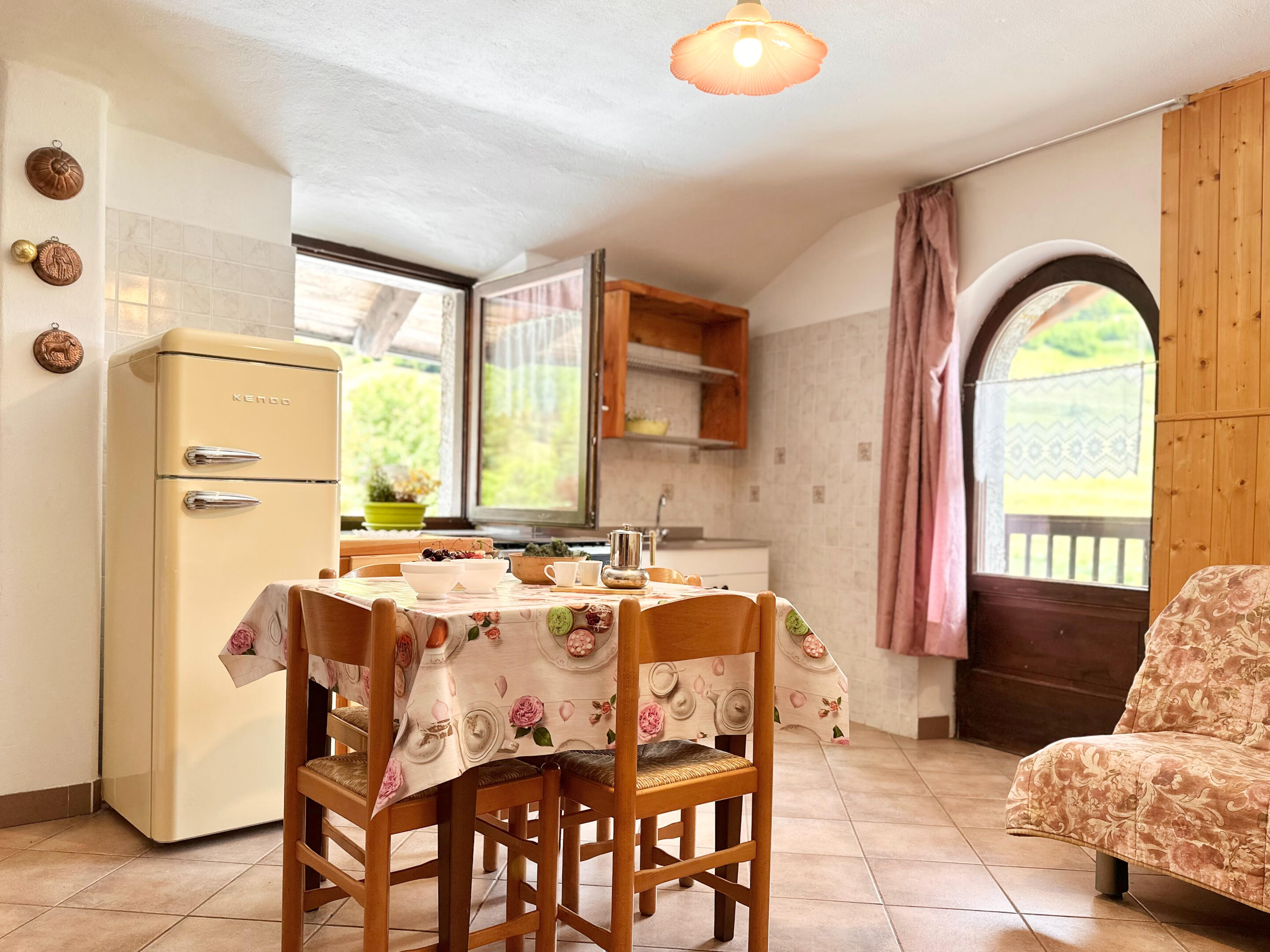 Divano letto matrimoniale, con angolo cottura e tavolo e balcone. Bagno condiviso con Camera 5.